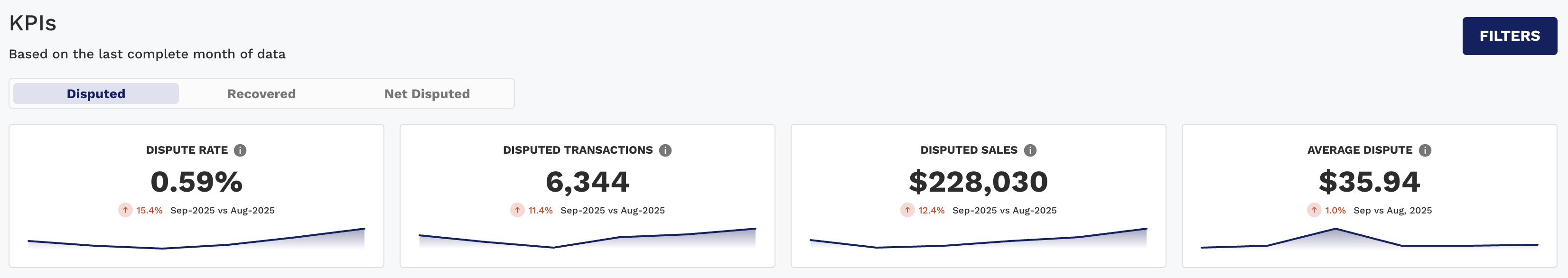 Net Disputed Sales | Same as Net Disputes, focused on dollar impact. |